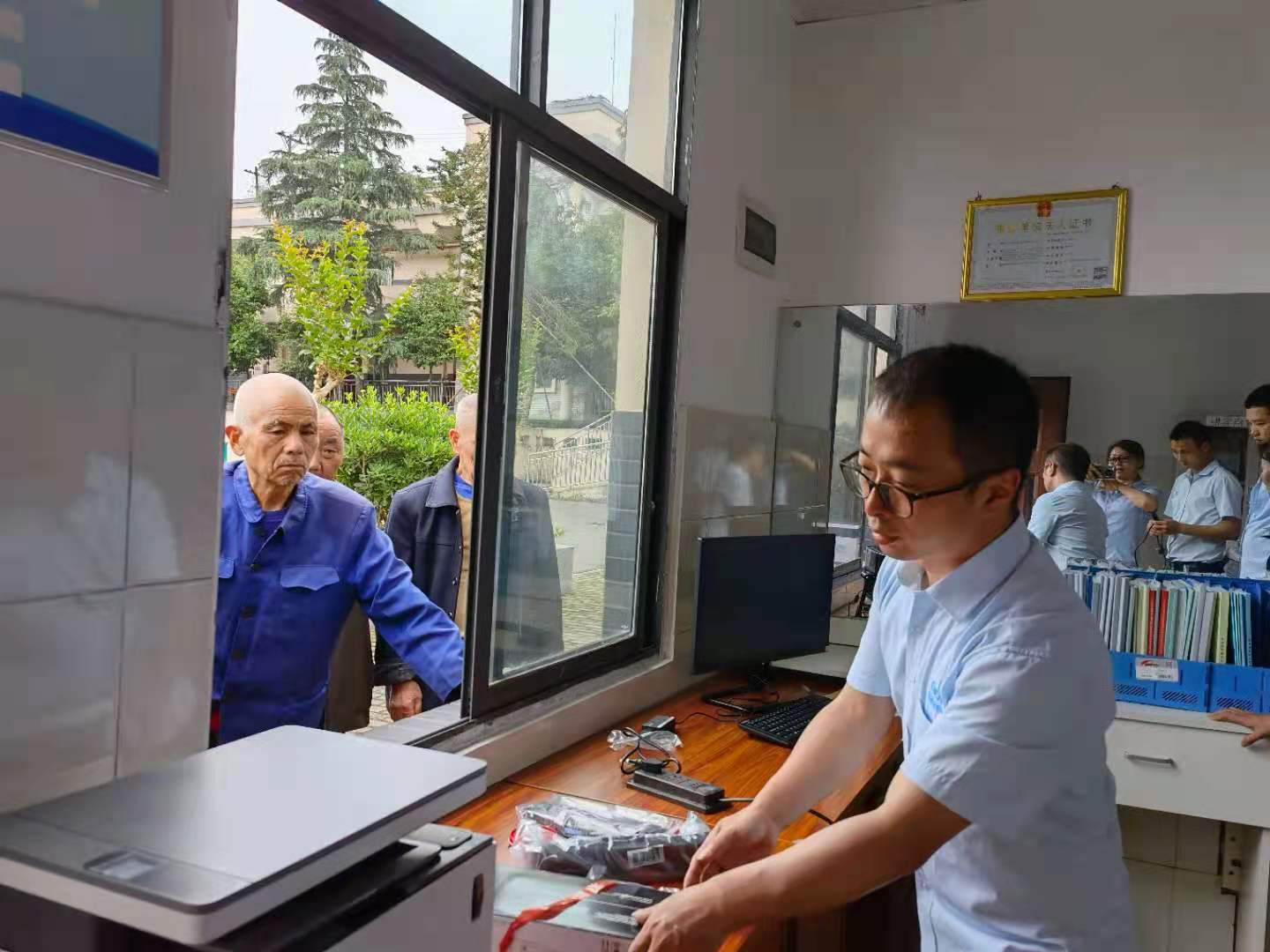 公司领导亲自把慰问品送到每一位老人手里,组装好各种设备,亲切慰问了每一位老人
